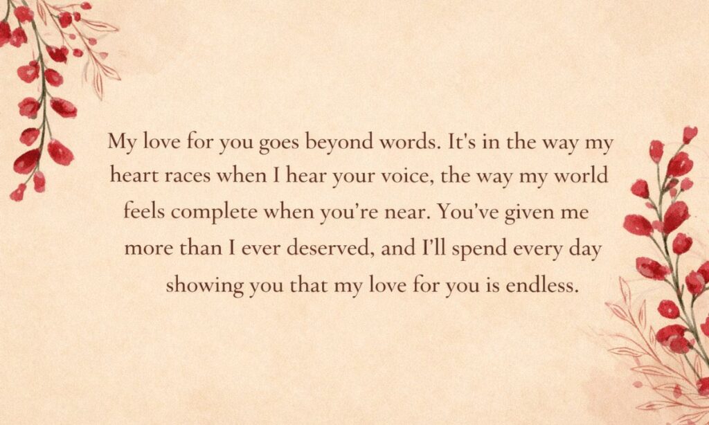 Love across the distance is never easy, but the right heartfelt love message for her can bridge any gap. These emotional love messages for long distances carry the power to make her feel your presence even from miles away. Every sweet love message you send is a reminder that your love is real, strong, and worth every mile. Distance may separate your bodies, but words like these keep your hearts forever close together.